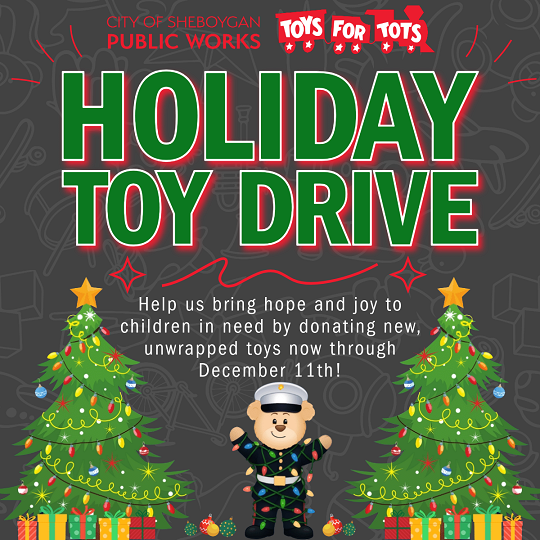 The City of Sheboygan Department of Public Works is proud to support the Toys for Tots program this holiday season! We are inviting employees and community members to help bring joy to children in need by donating new, unwrapped toys.