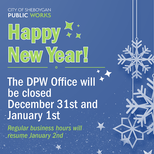 The Department of Public Works Office, located at 2026 New Jersey Avenue, will be closed on Wednesday, December 31, and Thursday, January 1.